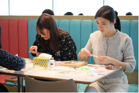 活动伊始,公司向全体女职工致以节日的问候与美好的祝福,感谢大家长期以来在工作中坚守岗位、拼搏奉献,在家庭中温暖相伴、勇担责任,用实干与温柔书写着新时代女性的风采。活动现场,非遗文化讲师围绕宋锦的历史渊源、工艺特点展开讲解,让女职工深入领略了非遗文化的深厚底蕴,也对宋锦的美学价值有了更直观的认识。教学演示环节,专业老师细致拆解了珍珠画的构图技巧、材料搭配及粘贴步骤,重点讲解了宋锦基底与珍珠、亮片的搭配诀窍,耐心解答大家提出的疑问。在手工DIY环节,女职工们热情高涨、兴致盎然,纷纷投入到创作中,结合讲解内容,充分发挥想象力与创造力,现场氛围温馨而热烈。